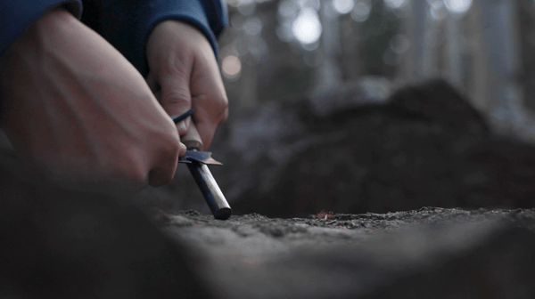 - Grip the Ferro Rod firmly in one hand while taking your steel striker on your other hand.